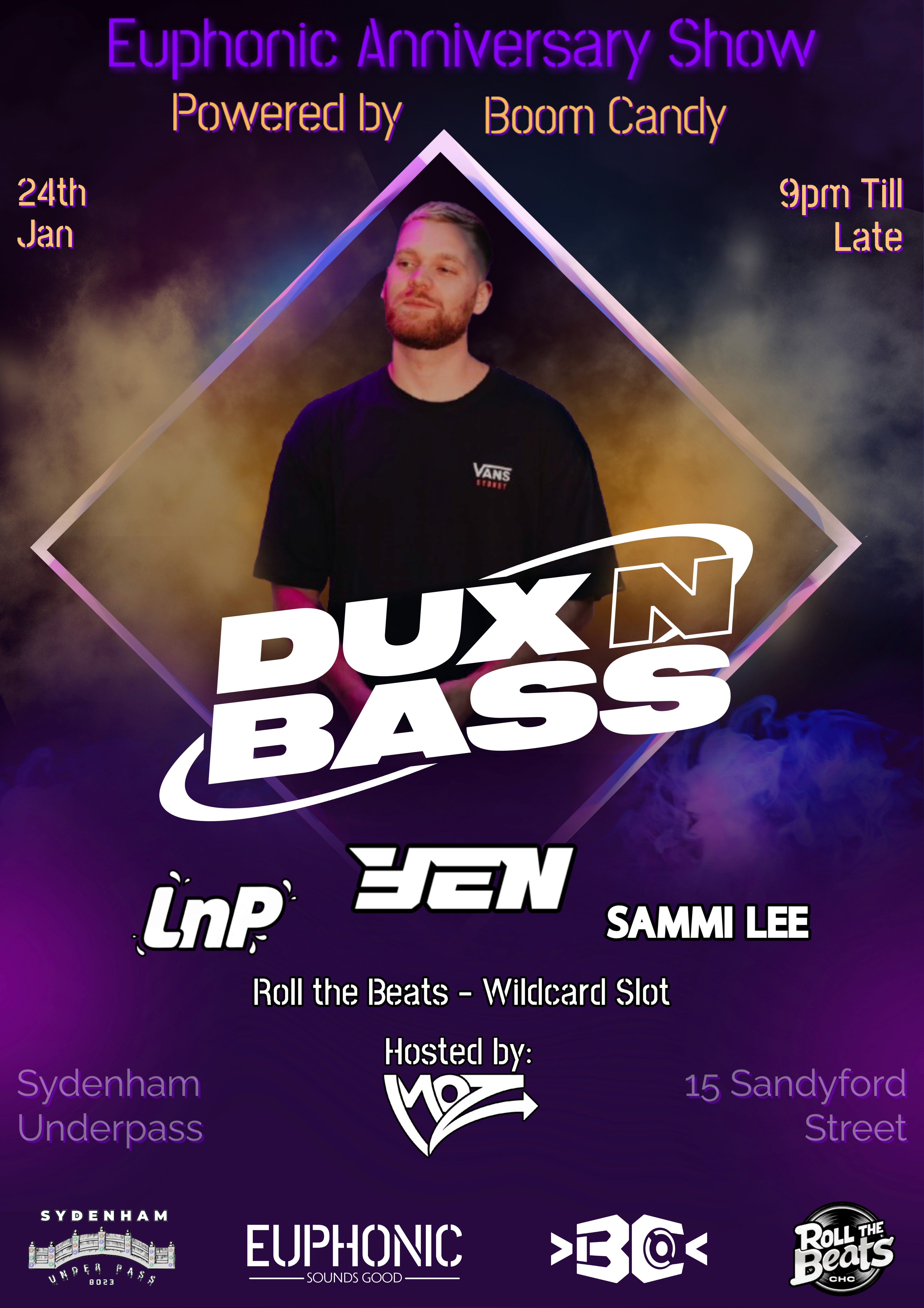 If Euphonic shows are just your type, then we have a big move for you. Marking one year since our first event we are celebrating with none other than Dux n Bass.